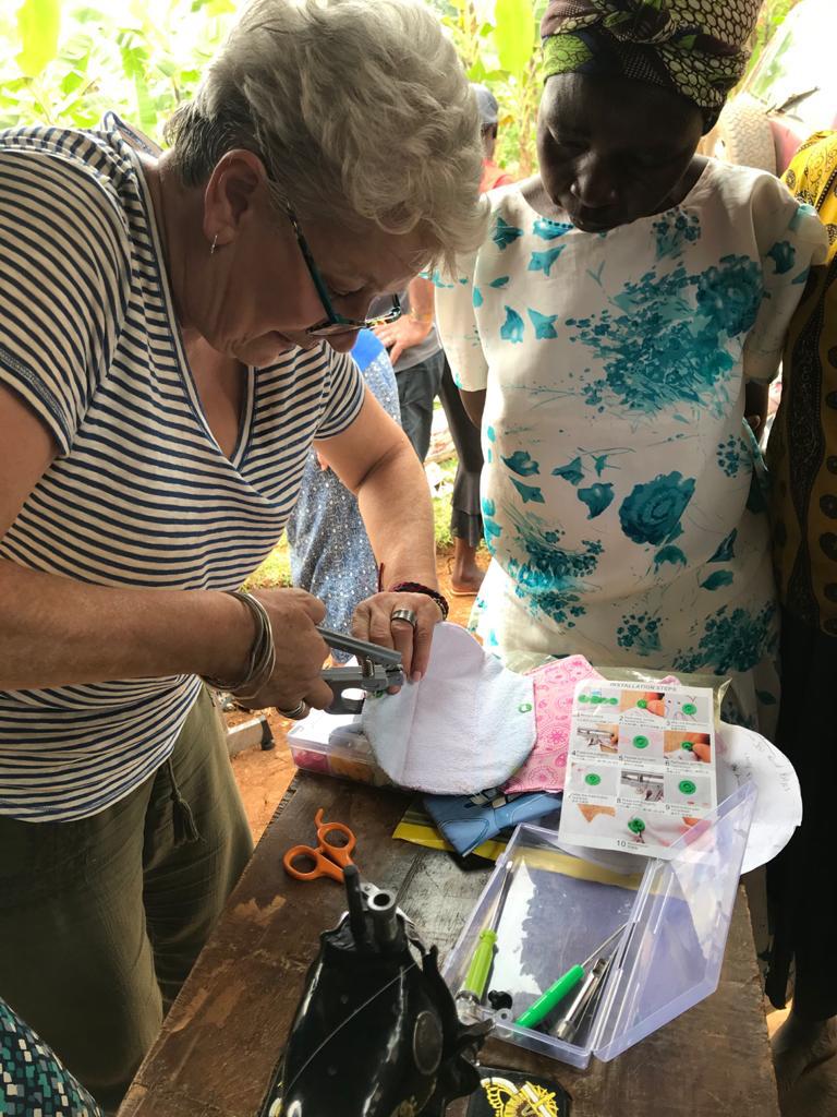 We then spent some time teaching the women how to make reusable sanitary pads which are in great demand as girls often have to miss school for a few days each month due to lack of protection.    We bought 2 new sewing machines for the groups and had taken out all the necessary materials with us.     We had also taken out several hundred pairs of knickers which were distributed to each of the groups we visited as women and girls in these remote communities often only have 1 pair of knickers which are kept for special occasions.