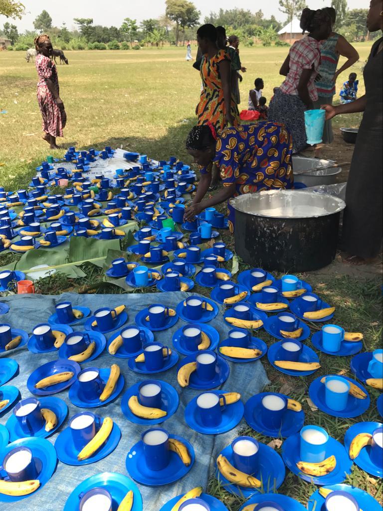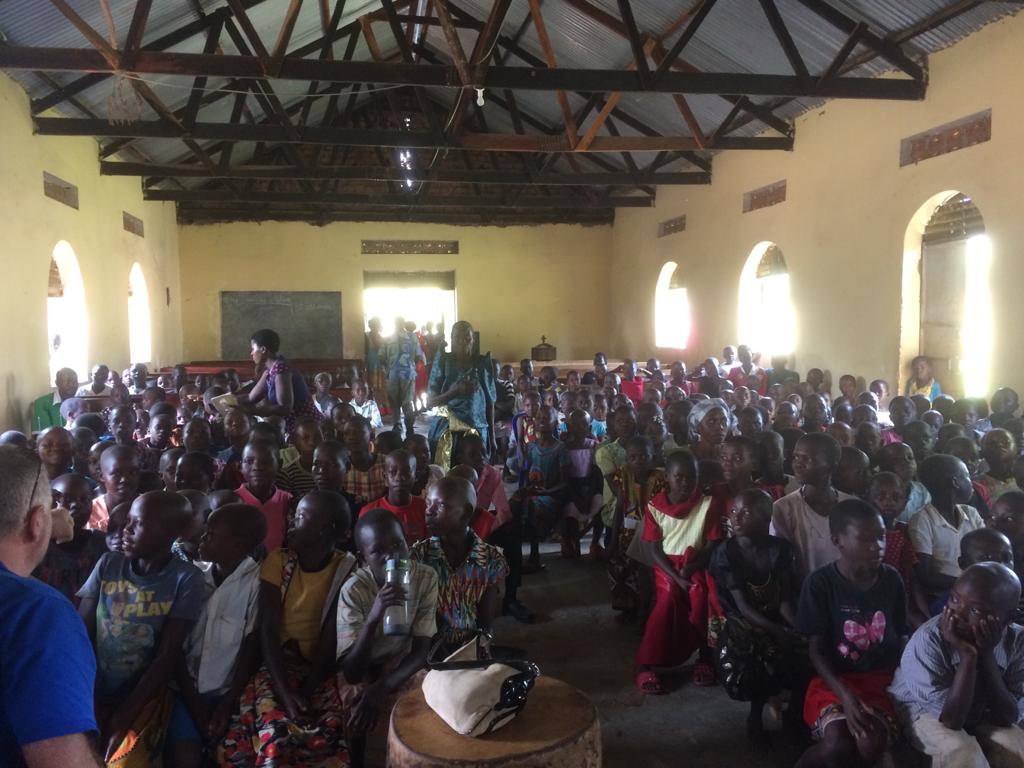 We went to St Stephen’s church at Lwangoli this morning – normally there are approximately 100-150 children but word had got out that there would be some ‘Muzungus’ coming and porridge being served so there were 300+ children there today!!