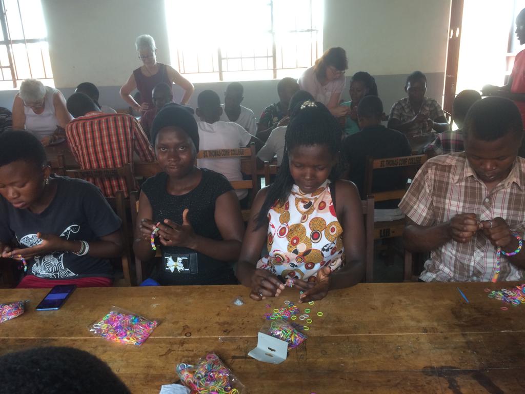 The “Children’s Conference” has been a huge success  –  70 secondary school young people (aged 15-24! ) have had amazing teaching on topics such as modern day slavery, career guidance, sex education, stress and bereavement with each session grounded in scripture.    They all loved our craft activities and some of our group couldn’t believe that young men and women of this age would have so much fun making loom band bracelets and necklaces!    Their patience and artistic creativity was wonderful to see with the scratch card calendars!