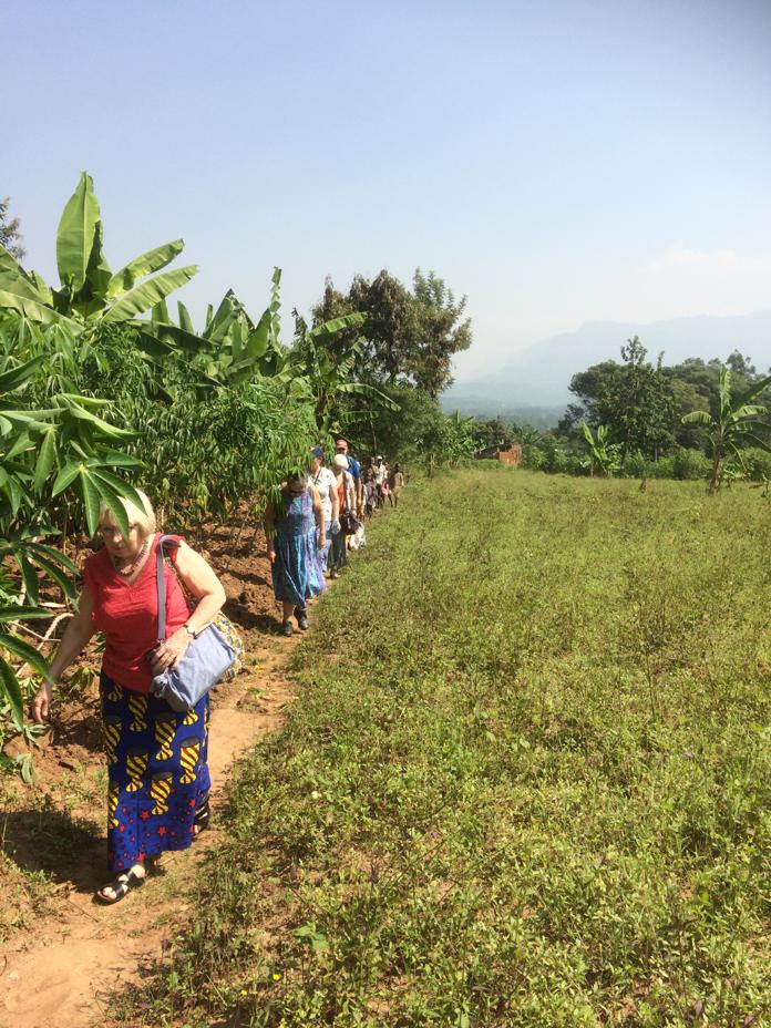 Muzungu, Muzungu!!! The children shout excitedly from the side of the red dusty earth track with massive pot holes that rock the jeep from side to side. The countryside is beautiful, lush green, plantains, bananas, avocados and massive jackfruit hang from the trees. We travel high up into the mountains visiting remote villages where UWCM visit on a regular basis. As we get near we hear the wonderful singing and that lovely ululation, a strange howling sound, then we see the women and children dancing and cheering, just for us!! We are greeted with hugs and ‘special’ handshakes the children, so beautiful, are so pleased to welcome us, tears fill my eyes, already that red dust has got into my eyes and indeed my heart ! Penny Sims